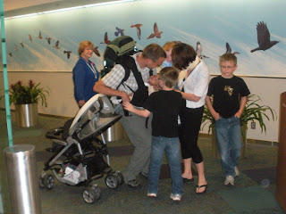 4. TODAY I met our nephew for the first time (Hubs was at work)! Hubby's oldest brother is in the military in Germany and since we've last seen him (when I was 6 months pregnant) he has married his sweetheart and they have had a baby boy - Caleb! So my father-in-law picked Monkey and I up this morning and we headed to the SEATTLE airport to pick them up! Caleb is now 7 1/2 months old and CUTE AS A BUTTON! Can't wait to spend some time with them this week!